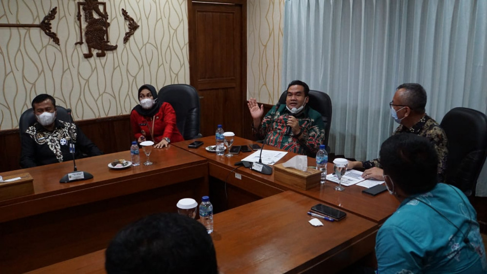 Bupati Blora H Arief Rohman SIP MSi, saat menerima pimpinan Politeknik Penerbangan (Poltekbang) Surabaya. Kamis (10/06/2021) (foto: priyo/beritabojonegoro)