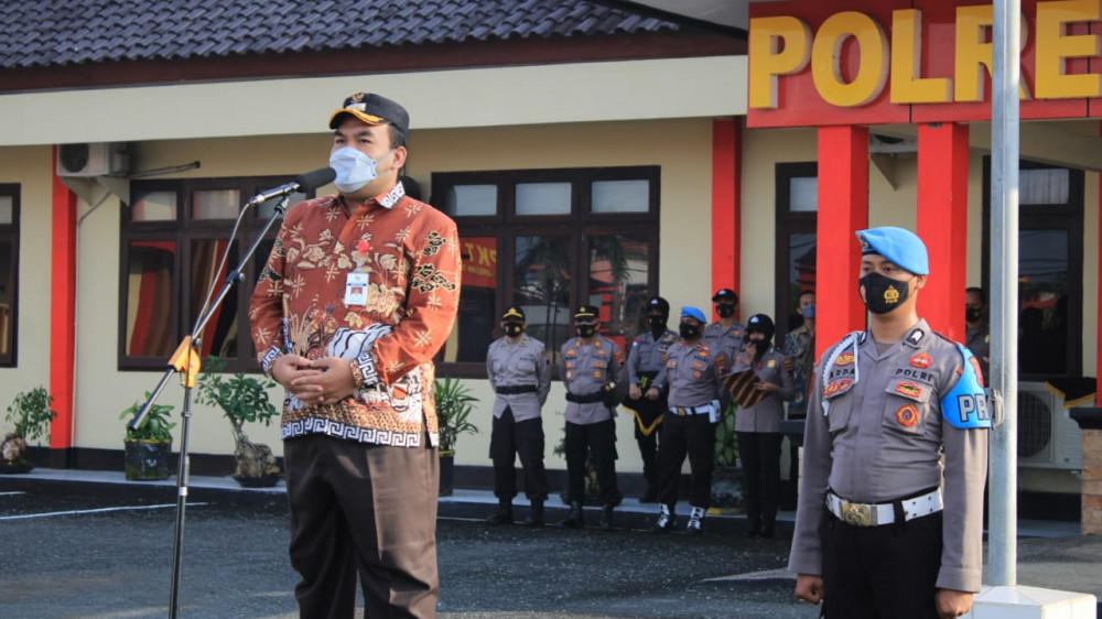 Sebelum dilaksanakan penandatanganan nota kesepakatan, kegiatan diawali dengan apel bersama di halaman Mapolres Blor, dipimpin oleh Bupati Blora H Arief Rohman.