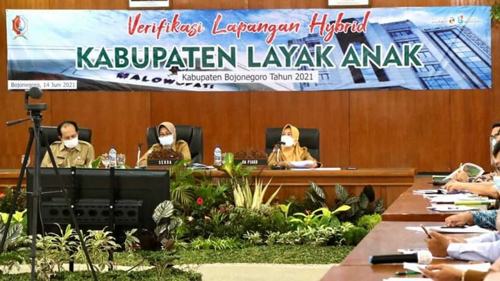 Bojonegoro - Pemerintah Kabupaten (Pemkab) Bojonegoro melaui Dinas Pemberdayaan Perempuan, Perlindungan Anak, dan Keluarga Berencana (P3AKB) Kabupaten Bojonegoro, pada Senin (14/06/2021) ikuti webinar dalam rangka Verifikasi Lapangan Evaluasi Kabupaten Layak Anak (KLA) tahun 2021, yang diselenggarakan oleh Kementrian Pemberdayaan Perempuan dan Perlindungan Anak Republik Indonesia.