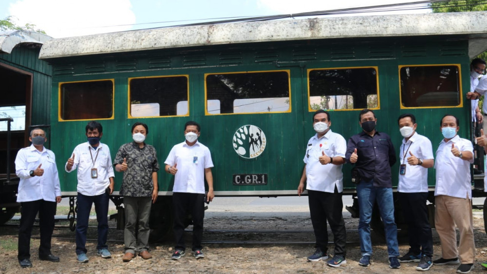 Dirut Perum Perhutani, Wahyu Kuncoro, didampingi Bupati Blora H Arief Rohman SIP MSi, saat kunjungi Heritage Trainz Loco Tour Cepu, di Blora. Rabu (16/06/2021) (foto: istimewa)