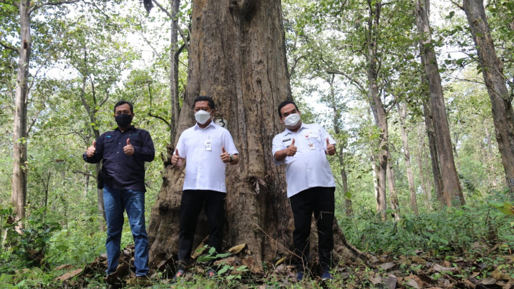 Blora - Direktur Utama (Dirut) Perum Perhutani, Wahyu Kuncoro, didampingi Bupati Blora H Arief Rohman SIP MSi, pada Rabu (16/06/2021), berkesempatan mengunjungi kawasan Wana Wisata Hutan Alam Jati 'Gubug Payung' yang berada di kawasan hutan jati KPH Cepu, di Kecamatan Sambong, Kabupaten Blora.