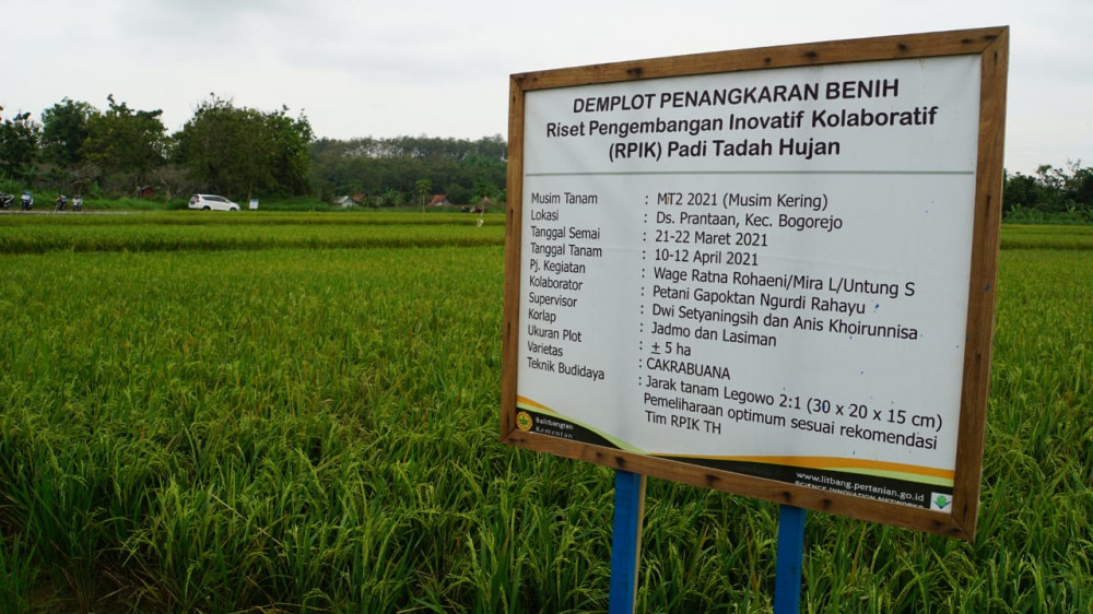 Varietas padi yang ditanam tersebut di antaranya Cakrabuana, Inpari 39 Tadah Hujan, Inpari 46 Agritan TDH, Inpari 43 Agritan GSR, Inpari 42 Agritan GSR, Inpari Digdaya, Inpago 8, Inpago 9, Inpago 12, dan Inpago 13 Fortiz.