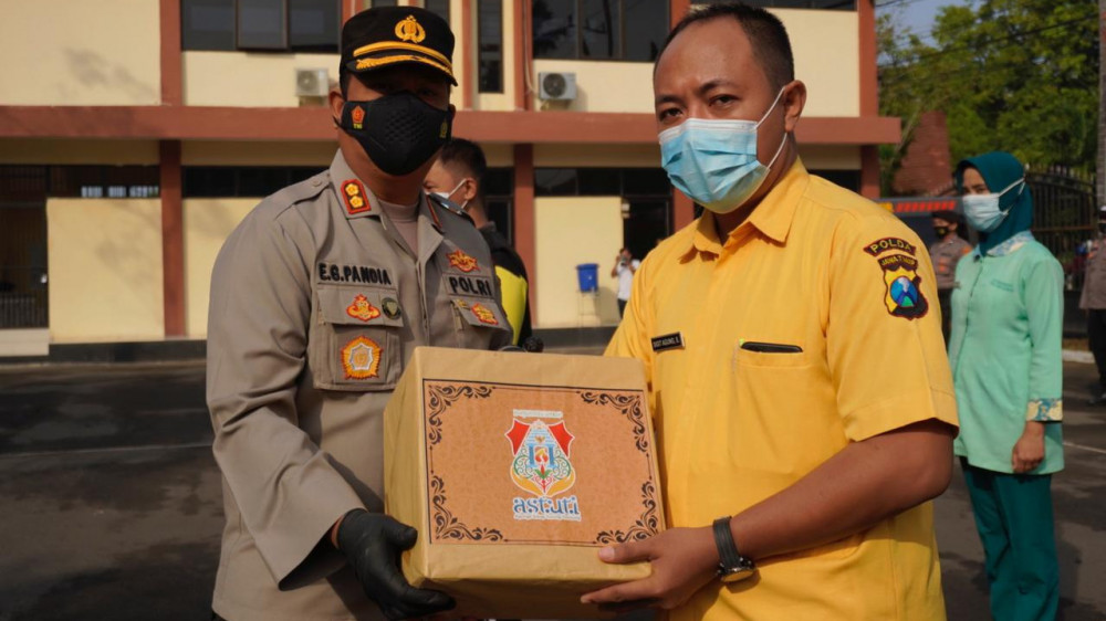 Pembagian paket sembako dan masker sebanyak 200 ini dipimpin langsung Kapolres Bojonegoro, AKBP EG Pandia SIK MM MH, di halaman Mapolres Bojonegoro.