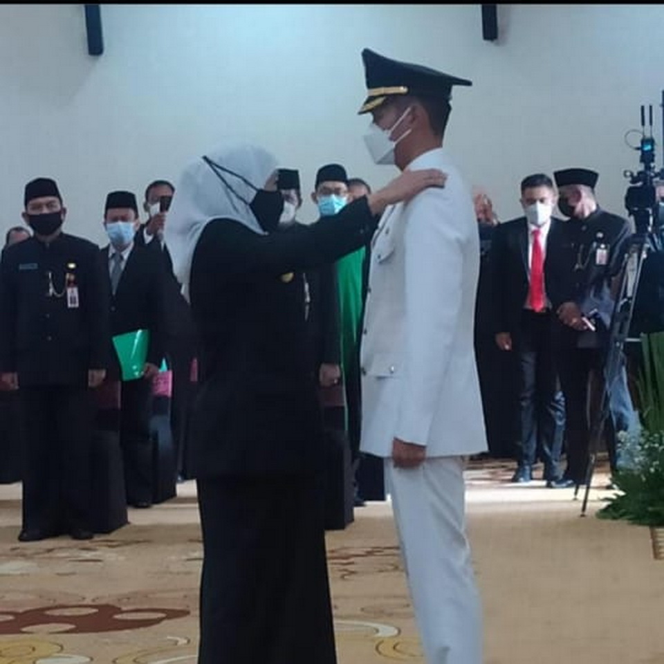Surabaya - Gubernur Jawa Timur, Khofifah Indar Parawansa, pada Minggu (20/06/2021), bertempat di Gedung Negara Grahadi Surabaya, memimpin pelantikan dan pengambilan sumpah jabatan pasangan Bupati dan Wakil Bupati Tuban, Aditya Halindra Faridzky-Riyadi.