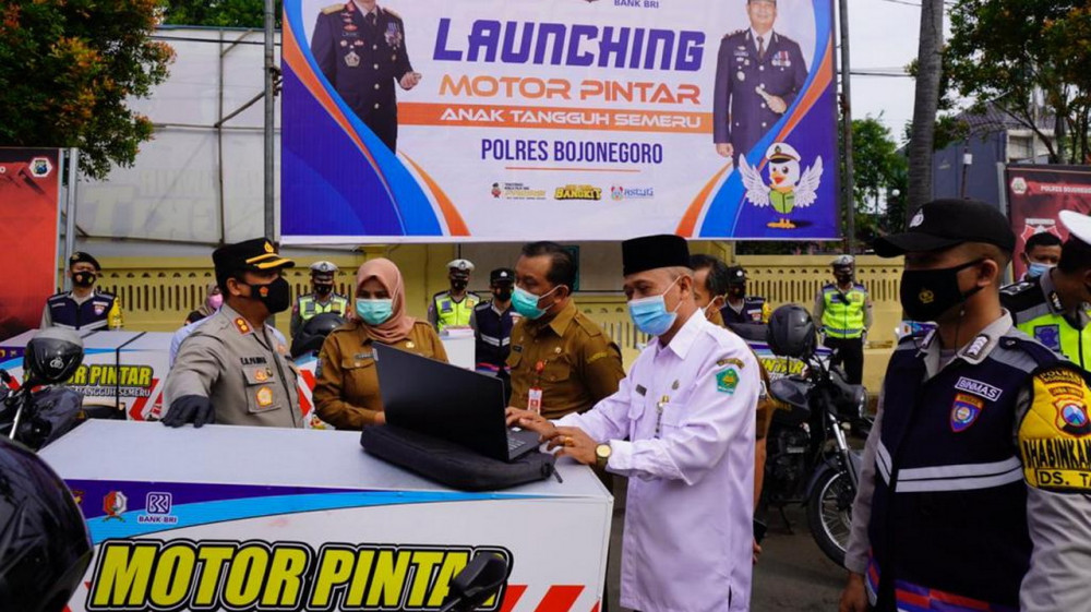 Launching Motor Pintar Anak Tangguh Semeru yang dilaksanakan di halaman Mapolres Bojonegoro, tersebut dipimpin langsung oleh Kapolres Bojonegoro, AKBP EG Pandia SIK MM MH dan dihadiri Wakapolres Bojonegoro, Kompol Arief Kristanto, Kepala Kantor Kementerian Agama Kabupaten Bojonegoro, Kepala Dinas Pendidikan Kabupaten Bojonegoro, Kepala Dinas Pendidikan Provinsi Jawa Timur perwakilan Bojonegoro dan Tuban, Kepala Dinas Perpustakaan dan Kearsipan Kabupaten Bojonegoro, Kepala Bank Rakyat Indonesia Cabang Bojonegoro, para pejabat utama Polres Bojonegoro dan Kapolsek jajaran.