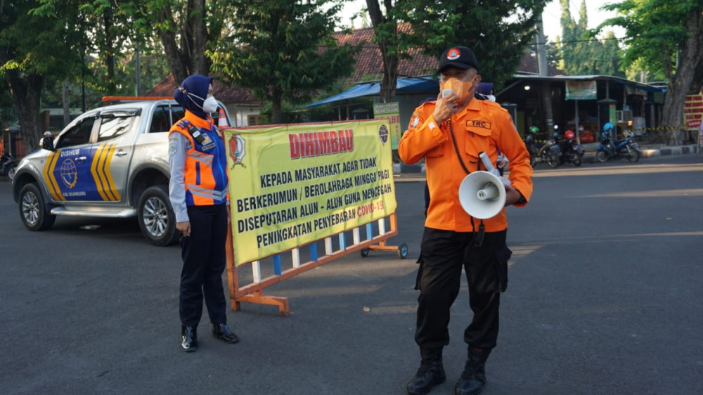 Selanjuntya pada Minggu (04/07/2021) pagi, Tim Satgas COVID-19 Kabupaten Bojonegoro yang terdiri dari Badan Penanggulangan Bencana Daerah (BPBD), Dinas Perhubungan (Dishub), dan Satpol PP Kabupaten Bojonegoro laksanakan kegiatan penertiban para pedagang dan warga yang sedang berolahraga di seputaran Alun-alun Kota Bojonegoro.