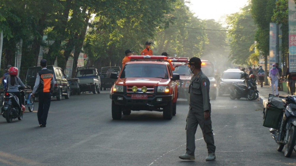 Selain itu, petugas juga melakukan penyemprotan disinfektan di sejumlah ruas jalan dan fasilitas umum yang ada di Kota Bojonegoro.