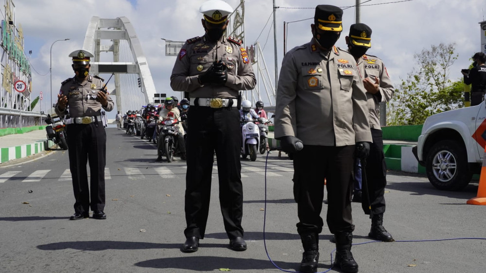 “Tepat pukul 10.07 WIB kita hentikan sejenak semua pengendara yang melintas di perempatan Jembatan Sosrodilogo ini selama 60 detik. Kita mendoakan yang terbaik untuk para nakes, relawan, masyarakat, dan semua yang telah mendahului kita," kata Kapolres Bojonegoro, AKBP EG Pandia.