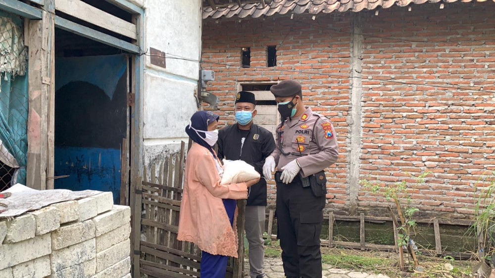 Polisi Bojonegoro Bersama Toga dan Tomas Salurkan Bantuan pada Warga Terdampak PPKM Darurat