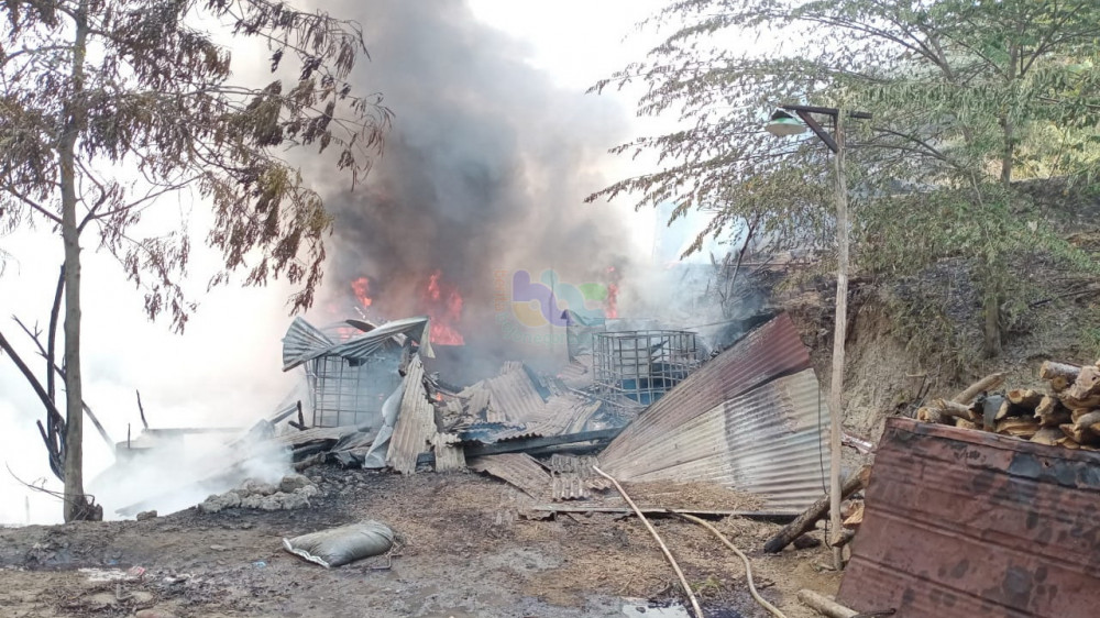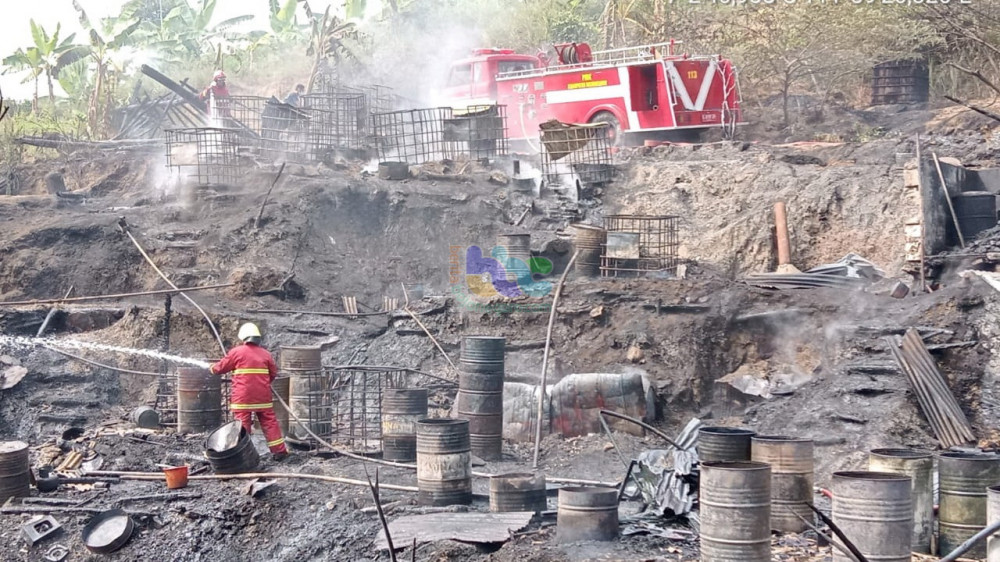 Bojonegoro - Peristiwa kebakaran terjadi Minggu (18/07/2021) sekira pukul 08.00 WIB menghanguskan bangunan rumah dan sejumlah peralatan peyulingan minyak, serta minyak mentah dan solar hasil penyulingan, milik kelompok penambang tradisional, di lokasi Sumur Tua D-122, turut Dusun Dangilo, Desa Hargomulyo, Kecamatan Kedewan, Kabupaten Bojonegoro, Jawa Timur.