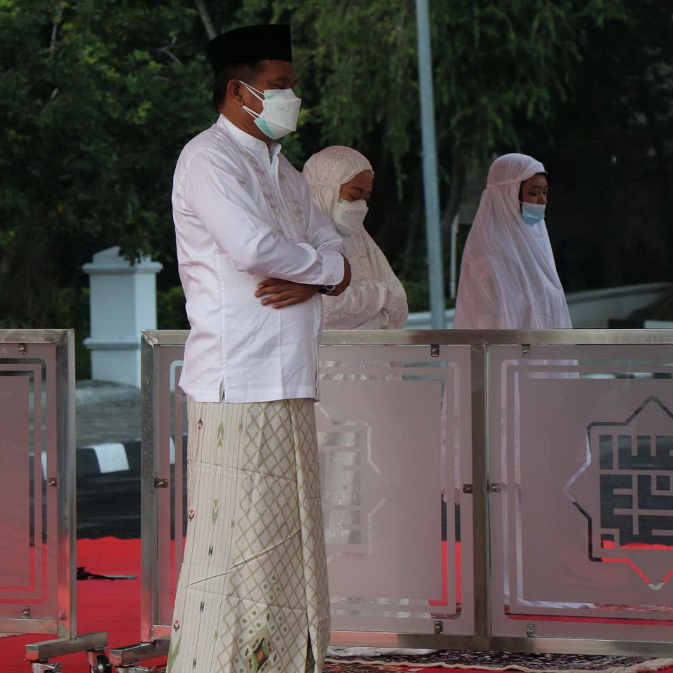 Pelaksanaan salad Iduladha tahun ini segaja digelar di halaman rumah dinas Bupati, sehubungan adanya Pemberlakuan Pembatasan Kegiatan Masyarakat (PPKM) Darurat, dan dilaksanakan dengan protokol kesehatan yang ketat.