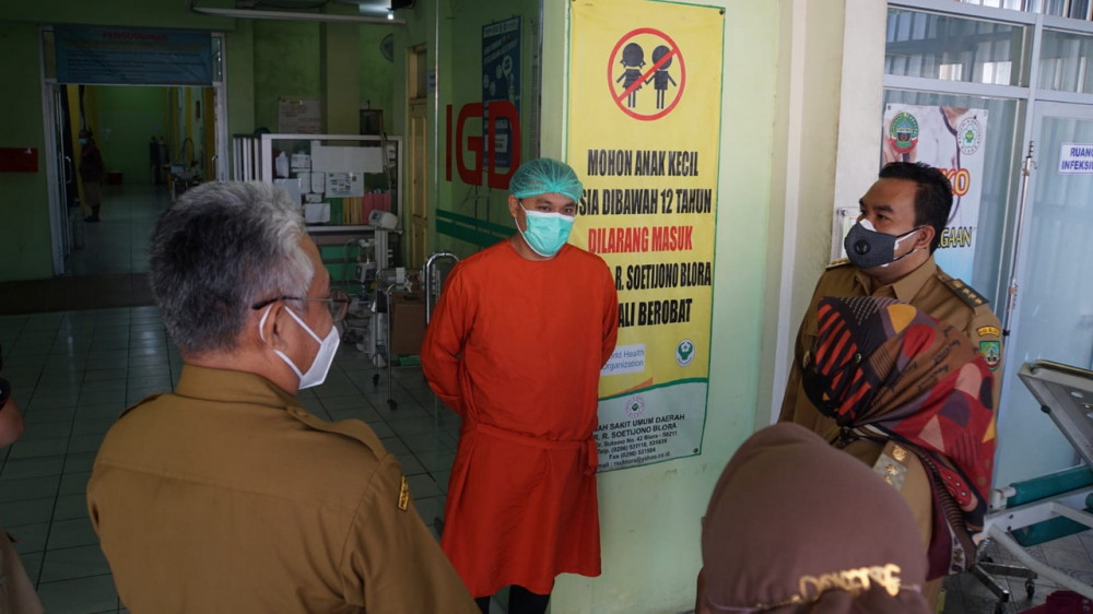 Hal tersebut diketahui saat Bupati Blora H Arief Rohman SIP MSi didampingi Wakil Bupati Tri Yuli Setyowati ST MM, melakukan tinjauan mendadak tentang pelayanan pasien di Instalasi Gawat Darurat (IGD) RSUD dr Soetijono Blora. Senin (26/07/2021).