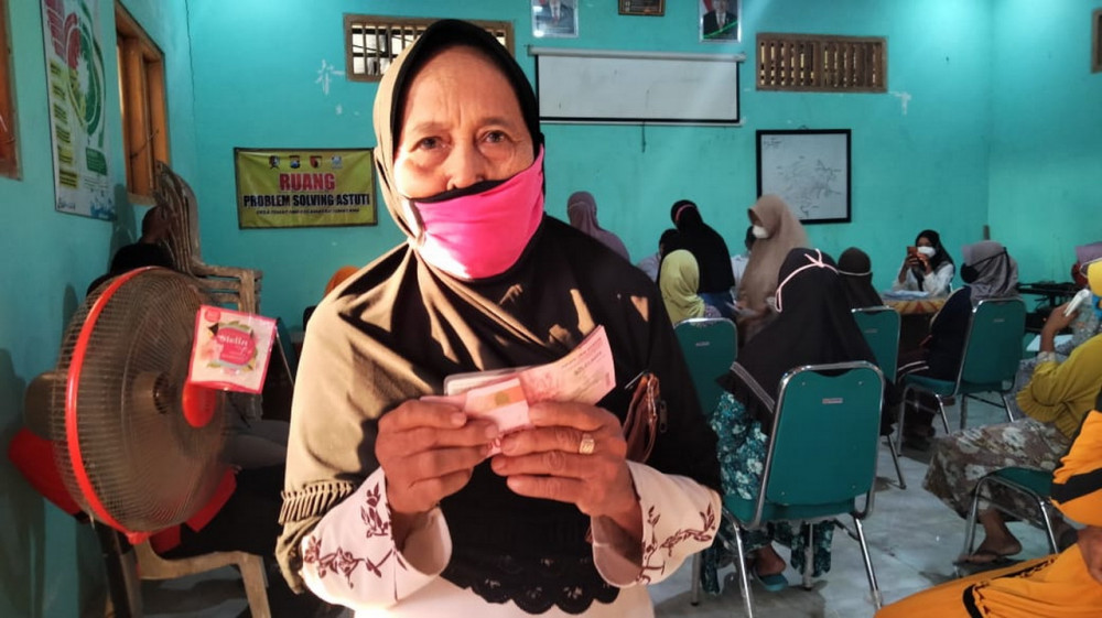 Rasmi (65 warga Desa Temayang, Kecamatan Temayang, usai menerima Bantuan Sosial Tunai (BST) di Balai Desa setempat. Rabu (28/07/2021) (istimewa)