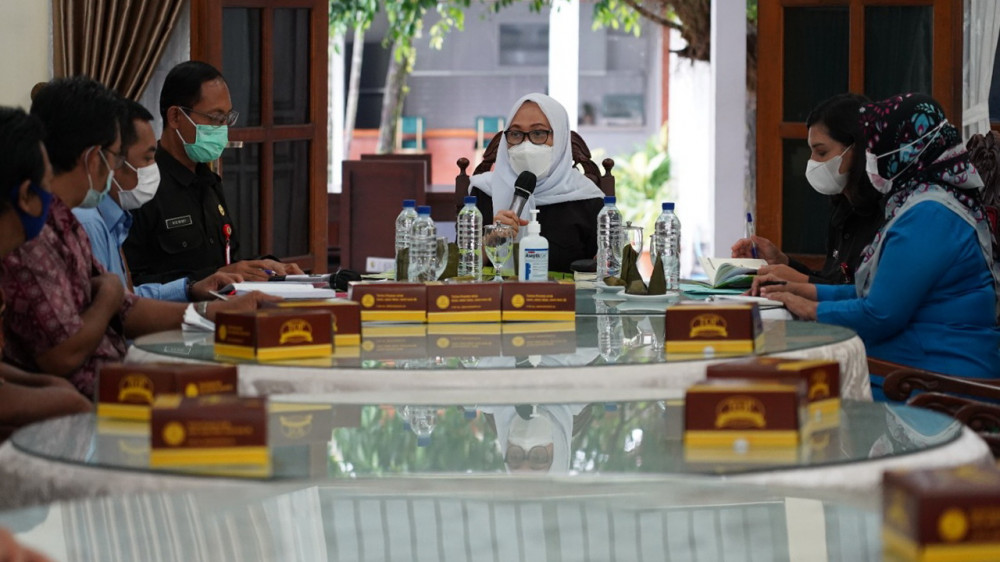 Bupati Bojonegoro Anna Mu'awanah saat hadiri rapat koordinasi (rakor) dengan perwakilan produsen tahu dan tempe di Bojonegoro. (istimewa)