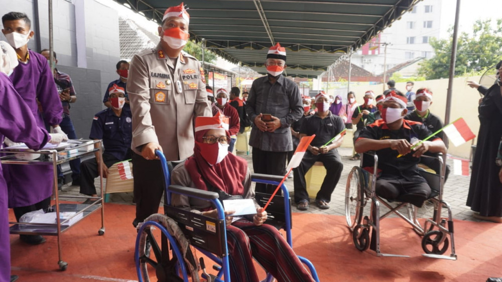 Bojonegoro - Kepolisan Resor (Polres) Bojonegoro, pada Selasa (10/08/2021) menggelar Serbuan Vaksinasi Merdeka Semeru, dengan sasaran penyandang disabilitas yang ada di Kabupaten Bojonegoro.