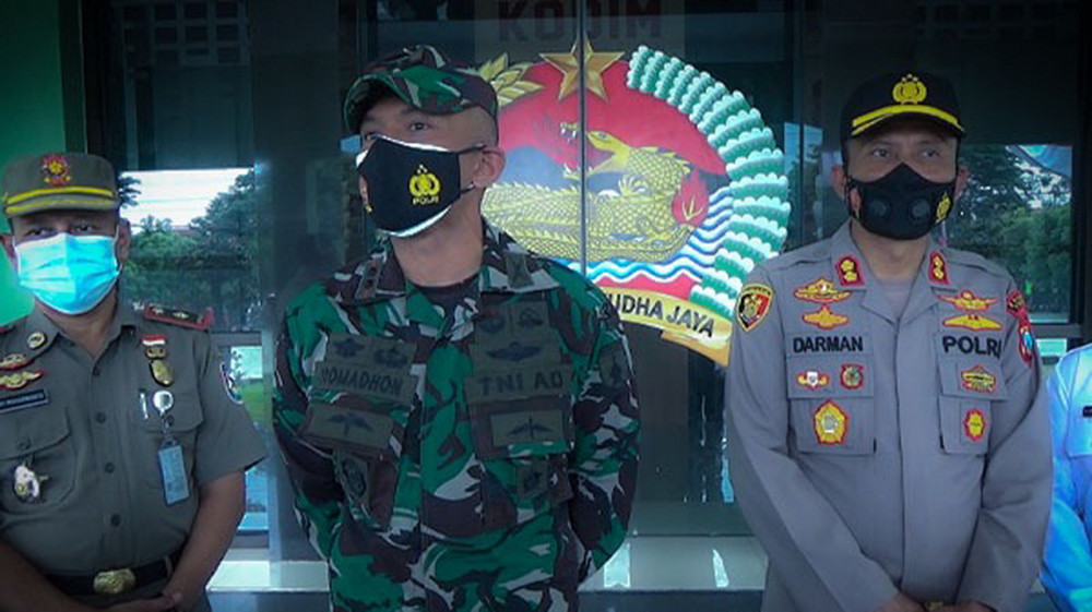 Tuban - Menyikapi adanya perpanjangan masa Pemberlakuan Pembatasan Kegiatan Masyarakat (PPKM), petugas gabungan dari TNI, Polri, Satpol PP, dan Dinas Perhubungan Tuban pada Rabu (18/08/2021), bertempat di halaman Kodim Tuban, menggelar apel dalam rangka penanganan COVID-19 di Kabupaten Tuban.