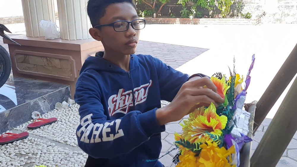 Blora - Pandemi COVID-19 yang masih berlangsung saat ini, menjadi berkah bagi sejumlah warga untuk berkarya. Salah satunya seorang pelajar asal Blora bernama Wildan Izza Fauzan, yang cukup kreatif memanfaatkan waktu untuk membuat karangan bunga.
