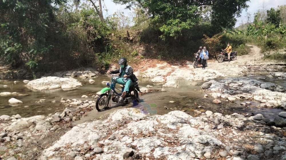 "Untuk jaraknya dari PuskesmasnTemayang sekitar 20 kilometer dengan waktu tempuh sekitar satu jam. Untungnya ini musim kemarau jadi agak lumayan mudah, mungkin beda kalau pas musim hujan, tentu sangat sulit karena tanahnya berlumpur dan licin," kata Erwin.