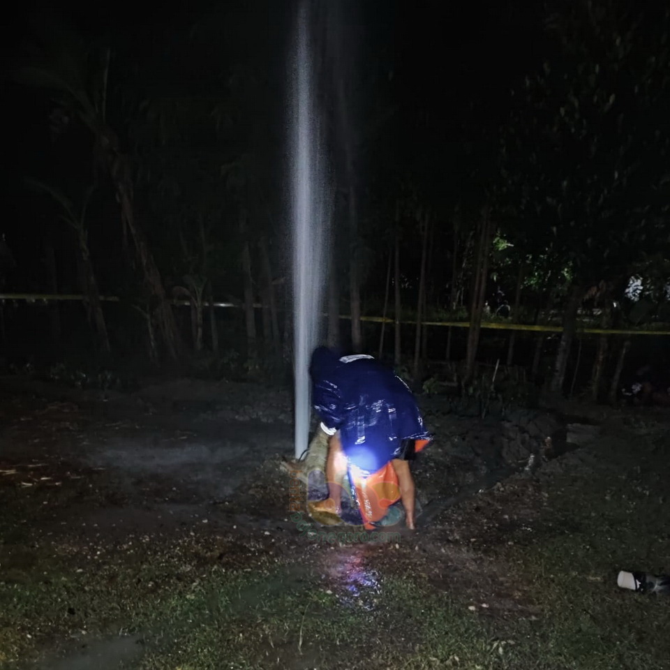 "Untuk sementara kita pasang police line dan kita tutup semburan air tersebut. Untuk luapan airnya kita alirkan ke sungai yang ada di dekat rumah korban," kata Iptu Fatkur Rahman SH