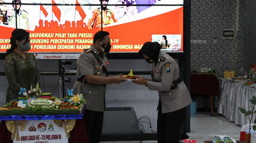 Bojonegoro - Hari Jadi ke-73 Polisi Wanita (Polwan) di Polres Bojonegoro diperingati dengan tasyakuran sederhana. Hal itu karena masih dalam situasi pandemi COVID-19. Namun demikian, kesederhaan tersebut tidak mengurangi kekhidmatan dan rasa syukur kepada Tuhan Yang Maha Kuasa.