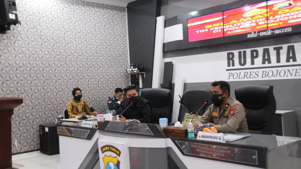 Tim Penelitian dari STIK Lemdiklat Polri, saat beri paparan dalam penelitian penerapan Electronic ETLE atau tilang elektronik, di Polres Bojonegoro. Selasa (14/09/2021) (istimewa)