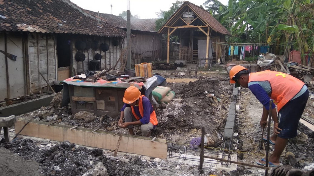 Para pekerja saat mengerjakan rehabilitasi rumah tidak layak huni milik salah satu warga di Kabupaten Bojonegoro. (istimewa)