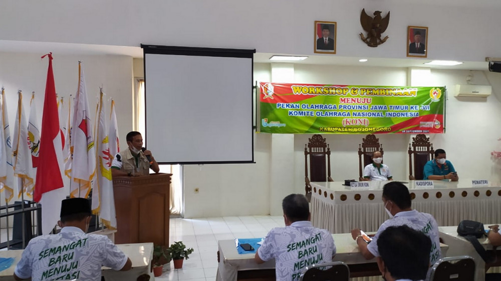 Bojonegoro - Komite Olahraga Nasional Indonesia (KONI) Kabupaten Bojonegoro, pada Sabtu (18/09/2021) menggelar Workshop dan Pembinaan bagi cabang-cabang olahraga yang menjadi anggota KONI Bojonegoro.