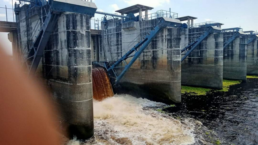 Kondisi air Sungai Bengawan Solo di Bendung Gerak, Desa Ngringinrejo, Kecamatan Kalitidu, Kabupaten Bojonegoro, yang berwarna coklat kehitam-hitaman. (foto: istimewa)