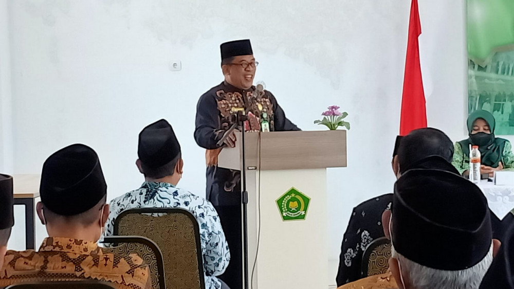 Kepala Kantor Kemenag Kabupaten Tuban Sahid, saat beri sambutan dalam acara Sosialisasi Pendaftaran dan Pembatalan Haji Reguler Tahun 2021. Kamis (30/09/2021) (foto: Dok Istimewa)
