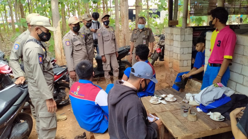 Para pelajar yang sedang nongkrong di warung kopi atau cafe saat terjaring razia Satpol PP Kabupaten Tuban. Rabu (06/10/2021). (foto: Dok Istimewa)