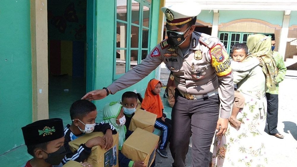 Program 'Sapa Saya', Sat Lantas Polres Bojonegoro Beri Santunan pada Anak Yatim Piatu