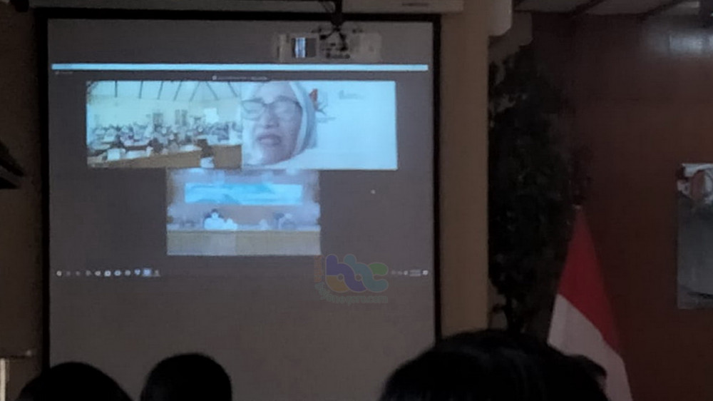 Bupati Bojonegoro Anna Mu'awanah saat beri sambutan secara virtual dalam Sosialisasi Perda Kabupaten Bojonegoro Nomor 5 tahun 2021 tentang RTRW. Kamis (14/10/2021) (foto: Dan/beritabojonegoro)