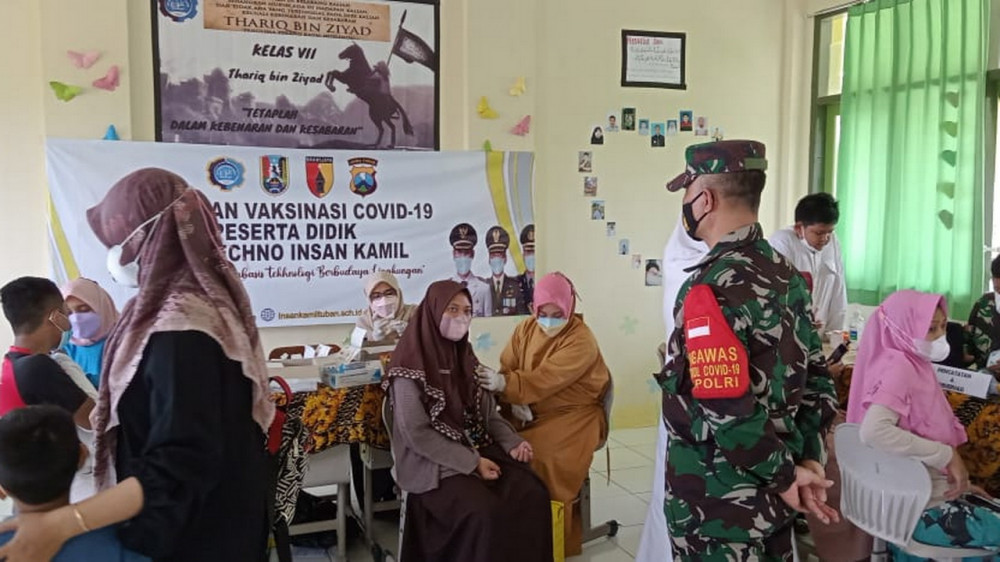 Kapten Inf Heri Purwanto menambahkan, vaksinasi di SMP Techno Insan Kamil dilakukan dengan dibantu oleh tim vaksinator atau tenaga kesehatan dari Puskesmas setempat.