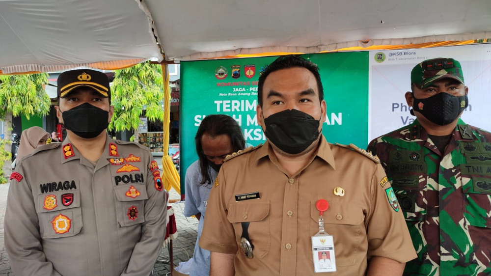 Bupati Blora H Arief Rohman SIP MSi, mengapresiasi sinergi yang terjalin baik antara Polres, Kodim, dan Pemkab Blora, serta seluruh elemen masyarakat yang ada dalam kegiatan vaksinasi COVID-19.