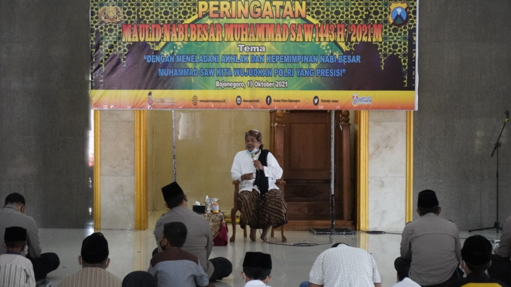Peringatan Maulid Nabi Muhammad SAW yang digelar Polres Bojonegoro di Masjid Al-Ikhlas Mapolres Bojonegoro. Selasa (19/10/2021),