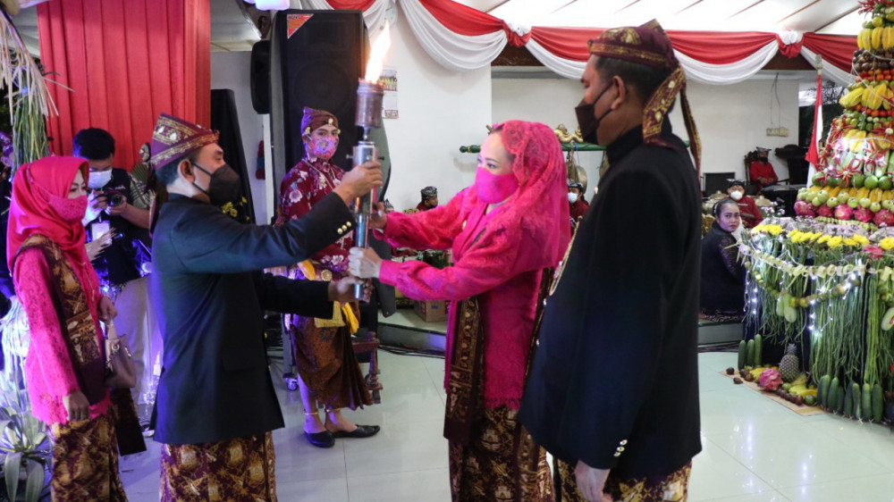 Acara yang digelar di Pendopo Malowopati Pemkab Bojonegoro, Selasa malam (19/10/2021) diawali dengan kegiatan penyerahan obor api abadi dari Ketua DPRD Bojonegoro Imam Sholikin kepada Bupati Bojonegoro Anna Mu’awanah.