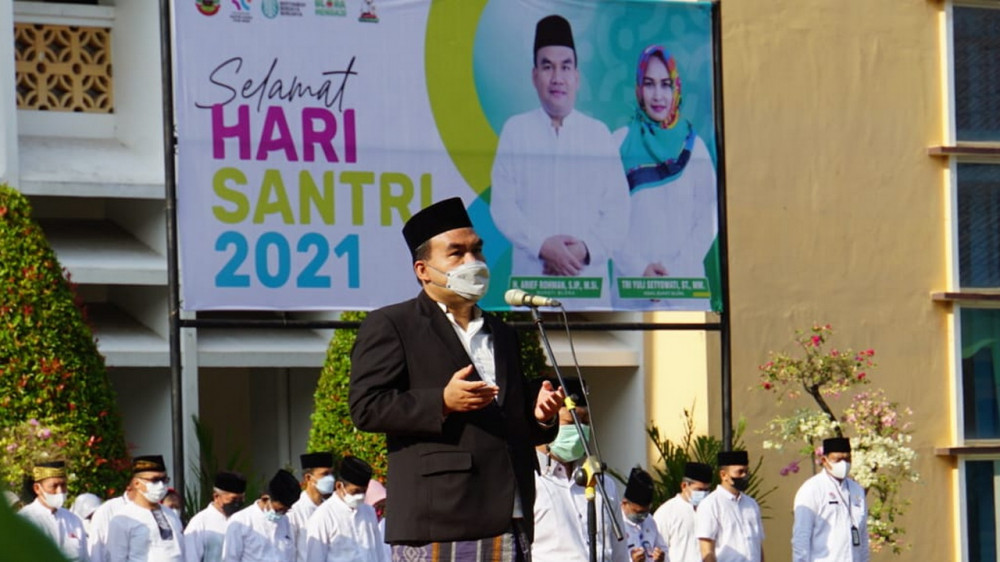 “Sejak ditetapkan pada tahun 2015, setiap tahun kita rutin menyelenggarakan peringatan Hari Santri dengan tema yang berbeda. Untuk peringatan Hari Santri Tahun 2021 ini mengangkat tema Santri Siaga Jiwa Raga,” ucap Bupati Arief Rohmn.