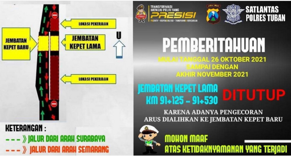 Infografis penutupan Jembatan Kepet Lama, di jalan nasional Surabaya-Semarang, di Desa Tunah, Kecamatan Semanding, Kabupaten Tuban. (foto: dok istimewa)