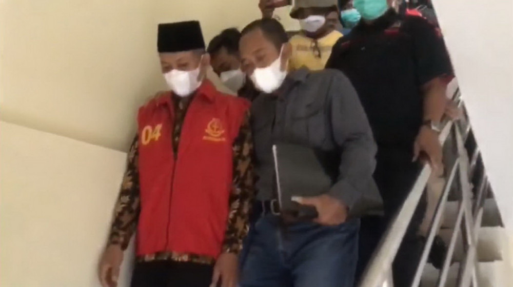 Tersangka SDK (baju oranye) saat berada di Kejaksaan Negeri (Kejari) Bojonegoro. Jumat (29/10/2021) (foto: dok istimewa)