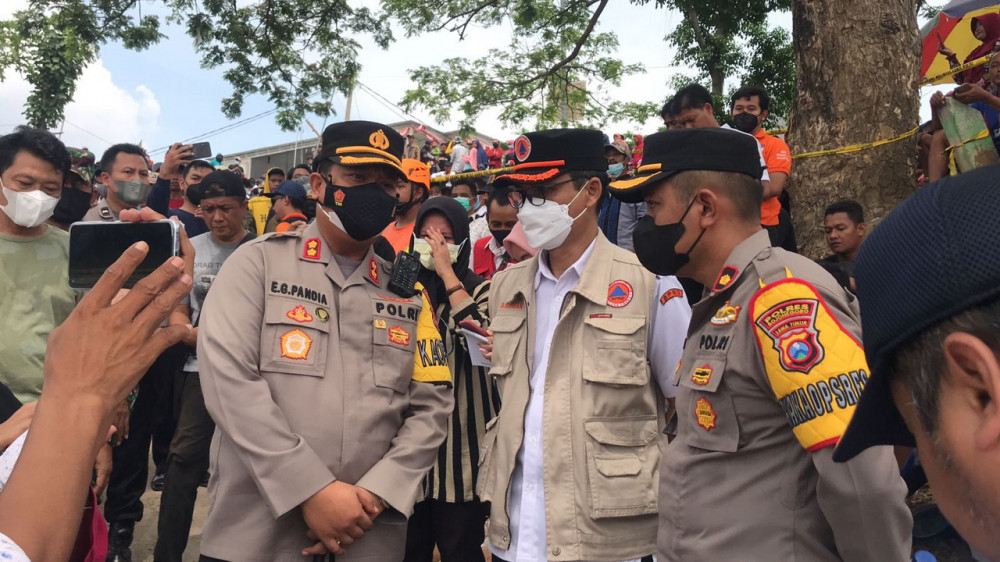 Bojonegoro - Kapolres Bojonegoro AKBP EG Pandia pada Rabu (03/11/2021) mendatangi Tempat Kejadian Perkara (TKP) tenggelamnya perahu tradisional, yang menghubungkan Desa Ngadirejo, Kecamatan Rengel, Kabupaten Tuban, dengan Desa Semambung, Kecamatan Kanor, Kabupaten Bojonegoro.