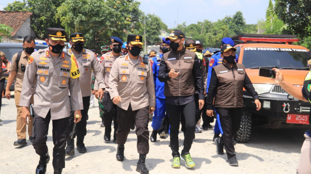 Tuban - Kepala Kepolisian Daerah Jawa Timur (Kapolda Jatim) Irjen Pol Dr Nico Afinta, pada Kamis (04/11/2021) pantau langsung proses pencarian korban peristiwa perahu penyeberangan yang tenggelam di Sungai Bengawan Solo, di Desa Ngadirejo, Kecamatan Rengel, Kabupaten Tuban.