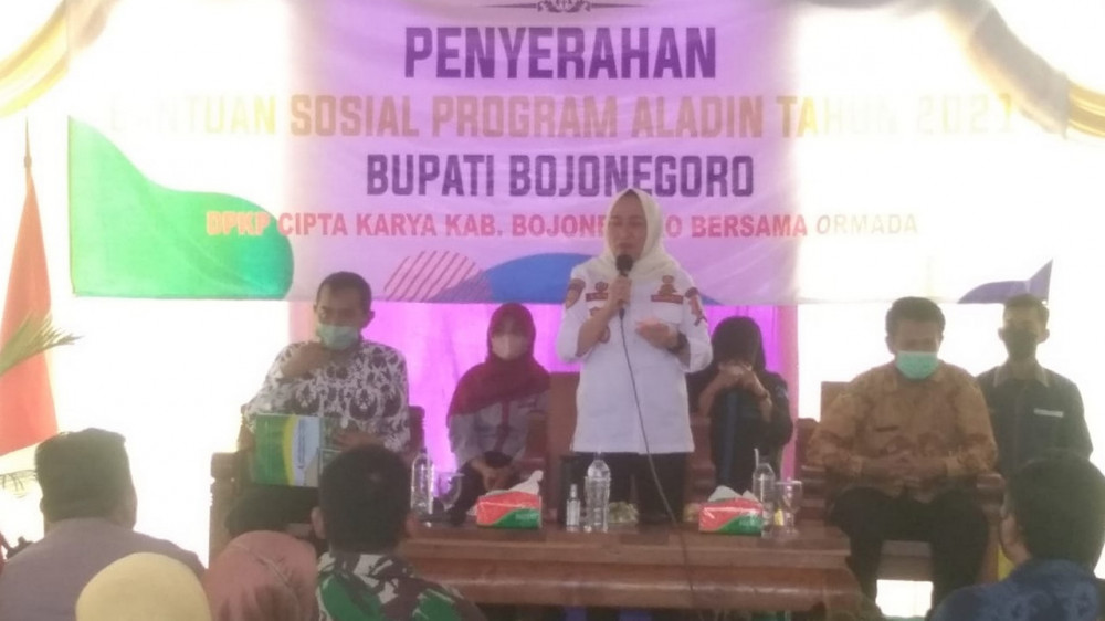 "Semoga dengan adanya bantuan Aladin ini masyarakat bisa hidup sehat dan nyaman. Dan tahun 2022 mendatang Program Aladin ini bisa tuntas." kata Bupati.