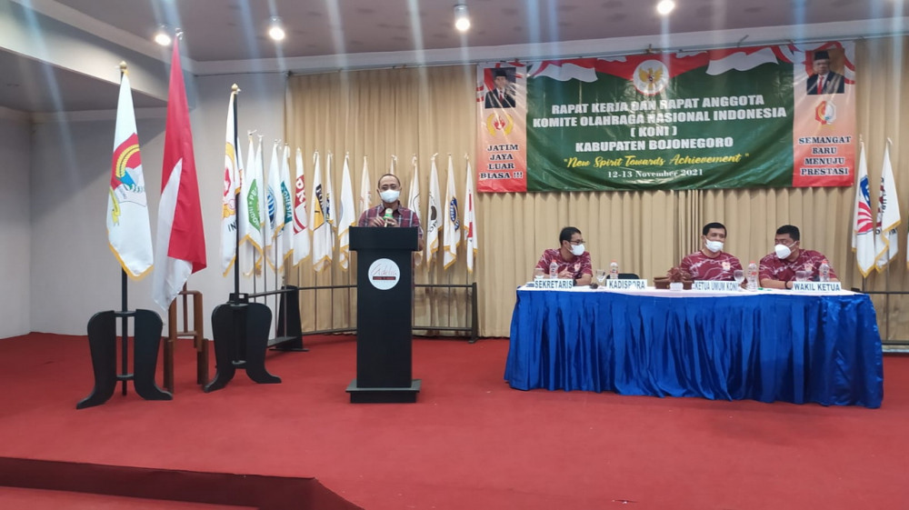 Bojonegoro - Komite Olahraga Nasional Indonesia (KONI) Kabupaten Bojonegoro, selama dua hari, mulai Jumat (12/11/2021) hingga Sabtu (13/11/2021), menggelar Rapat Kerja dan Rapat Anggota.