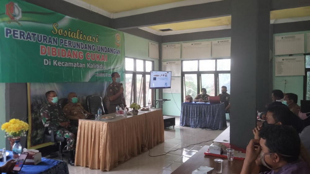 Sosialisasi Perundang-undangan Bidang Cukai dan Dana Bagi Hasil Cukai dan Hasil Tembakau (DBHCHT) di Pendopo Kecamatan Kalitidu, Kabupaten Bojonegoro. Senin (15/11/2021) (foto: dok istimewa)