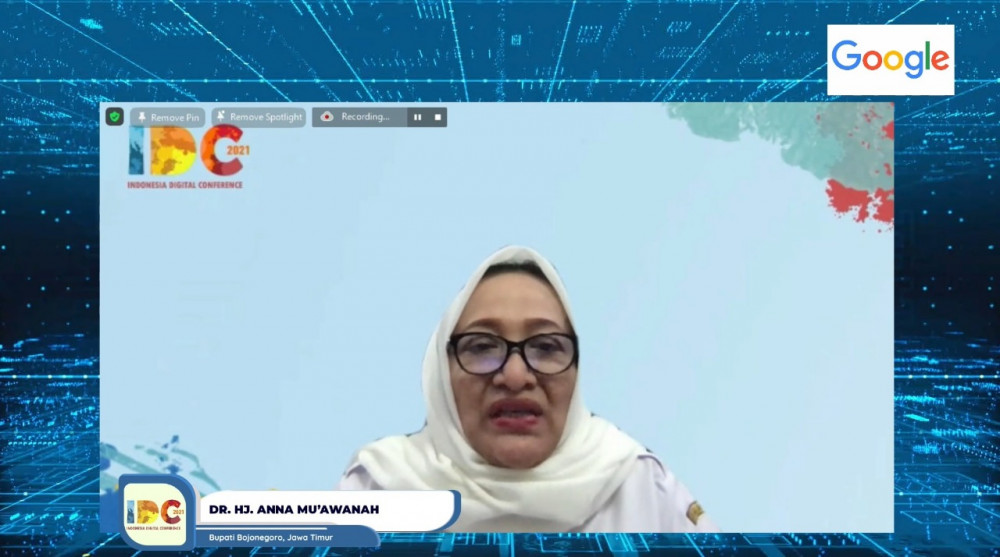 Bojonegoro - Bupati Bojonegoro Anna Mu'awanah, pada Rabu (17/11/2021), menjadi salah satu narasumber dalam acara Road to Indonesian Digital Conference (IDC) yang digelar secara daring oleh Asosiasi Media Siber Indonesia (AMSI) Jawa Timur.