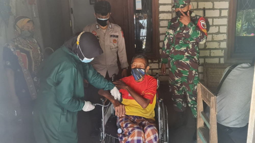 Bojonegoro - Upaya jajaran TNI, Polri, dan Pemerintah Daerah di Kabupaten Bojonegoro dalam percepatan pelaksanaan vaksinasi COVID-19 untuk mendukung capaian target vaksinasi, khususnya bagi warga lanjut usia (lansia), terus dilakukan, mengingat capaian vaksinasi lansia di Kabupaten Bojonegoro masih jauh dari target.