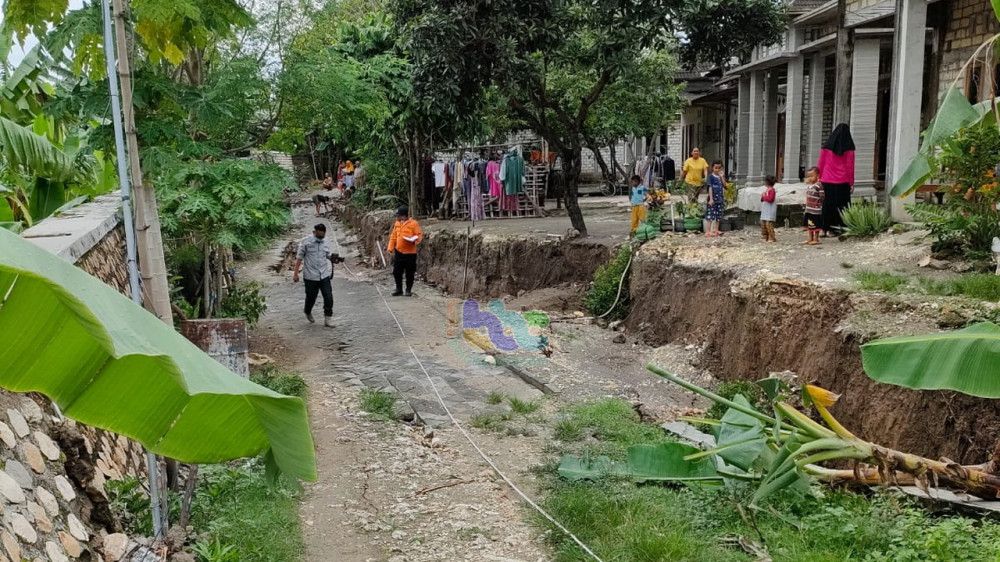 "Untuk sementara ini warga bergotong-royong menutup celah atau lubang retakan tanah tersebut, agar tidak membahayakan warga yang melintas," kata Jono.