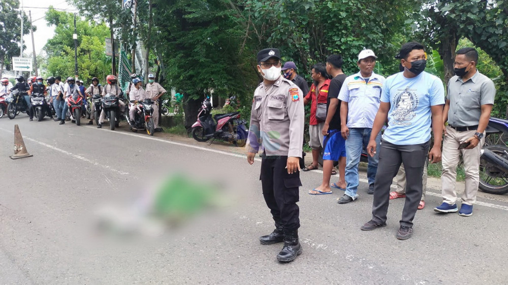 Tuban - Seorang pengendara motor asal Desa Merkawang, Kecamatan Tambakboyo, Kabupaten Tuban, meninggal dunia di lokasi kejadian atau tempat kejadian perkara (TKP) setelah alami kecelakaan lalu lintas di Jalur Pantura Tuban-Tambakboyo. Senin (06/12/2021).