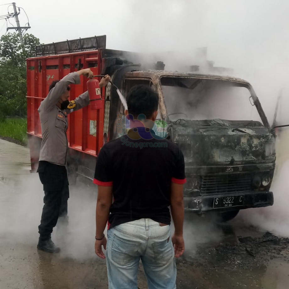 "Setelah turun, pengemudi truk melihat ada api yang menyala di bagian bawah kemudi yang semakin membesar," tutur Kapolsek.