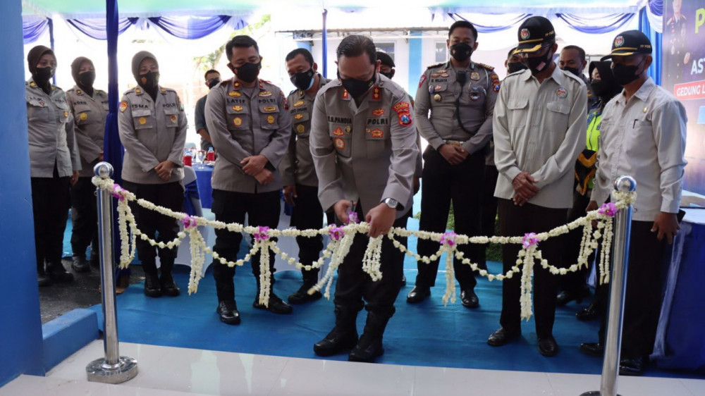 Bojonegoro - Kapolres Bojonegoro AKBP EG Pandia pada Sabtu (11/12/2021), bertempat di Sat Lantas Polres Bojonegoro, meresmikan Gedung Lantas Astuti Presisi 2000 Polres Bojonegoro.